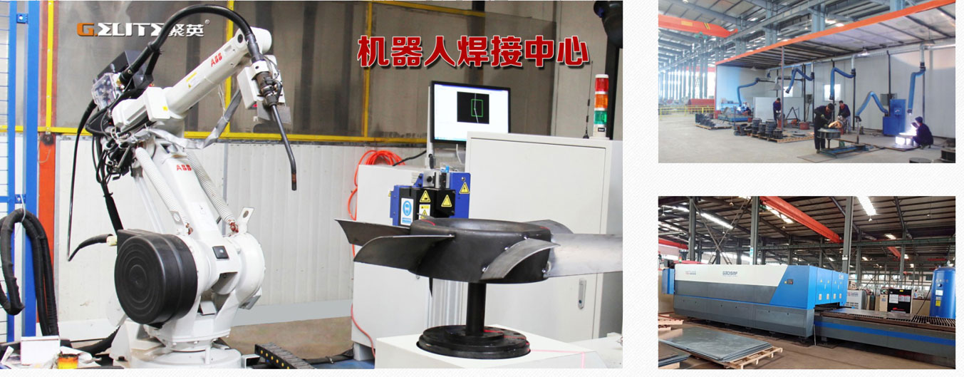 聚英生產(chǎn)中心配備了大量國外先進(jìn)的裝備工藝,如 ABB機(jī)器人焊接中心、大族數(shù)控激光切割機(jī)、機(jī)器人蝸殼焊接機(jī)、全自動框架生產(chǎn)線等一 流專 業(yè)制造設(shè)備,此外,聚英擁有獨立的技術(shù)研究測試中心和設(shè)備焊接中心,使生產(chǎn)效率、產(chǎn)品外觀、運行質(zhì)量、參數(shù)性能得到強(qiáng)有力的保障和提升。