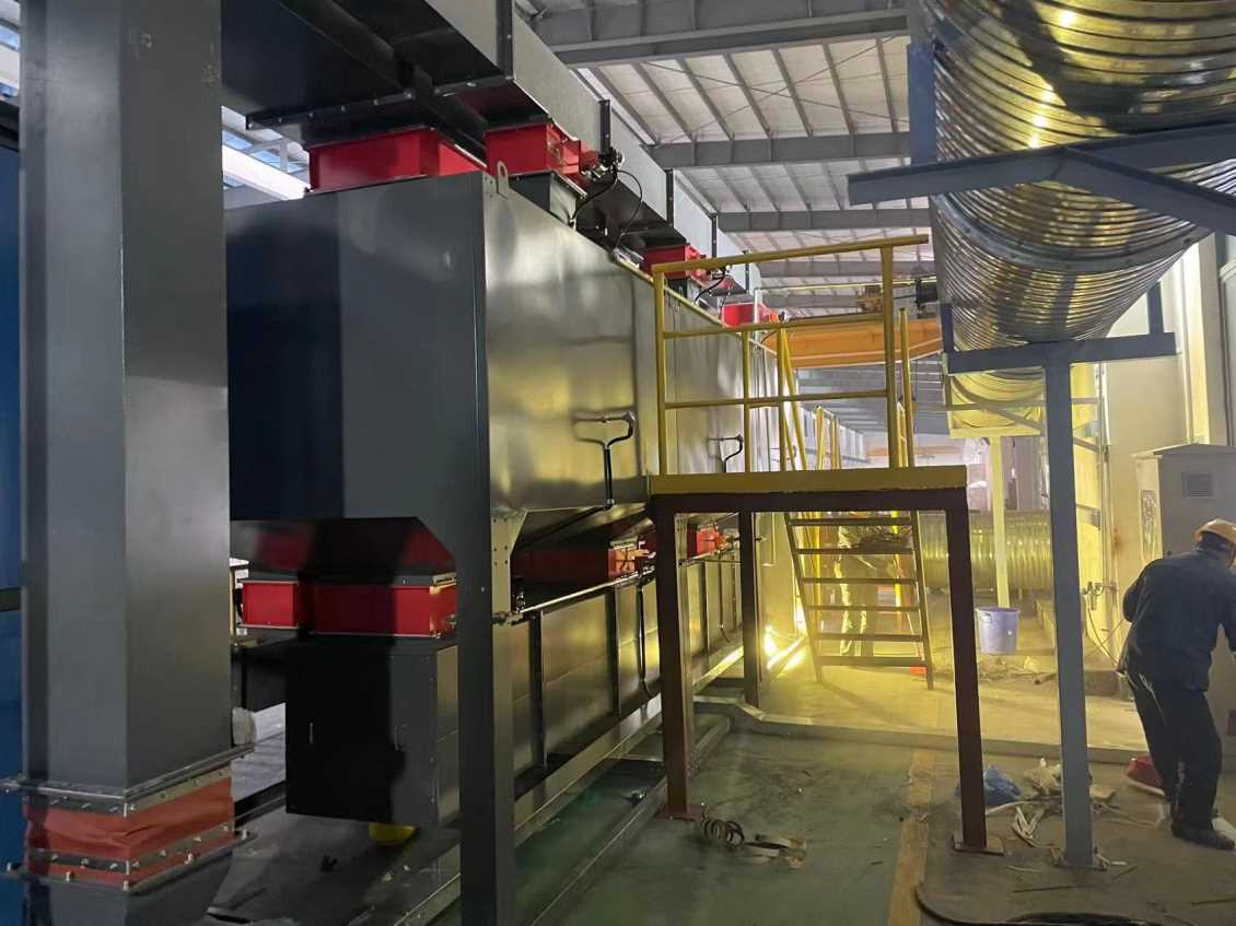 移動(dòng)伸縮房 → 干式漆霧凈化墻 → 管路收集 → 干式過濾 → 活性炭吸附脫附催化燃燒設(shè)備→風(fēng)機(jī) → 達(dá)標(biāo)排放